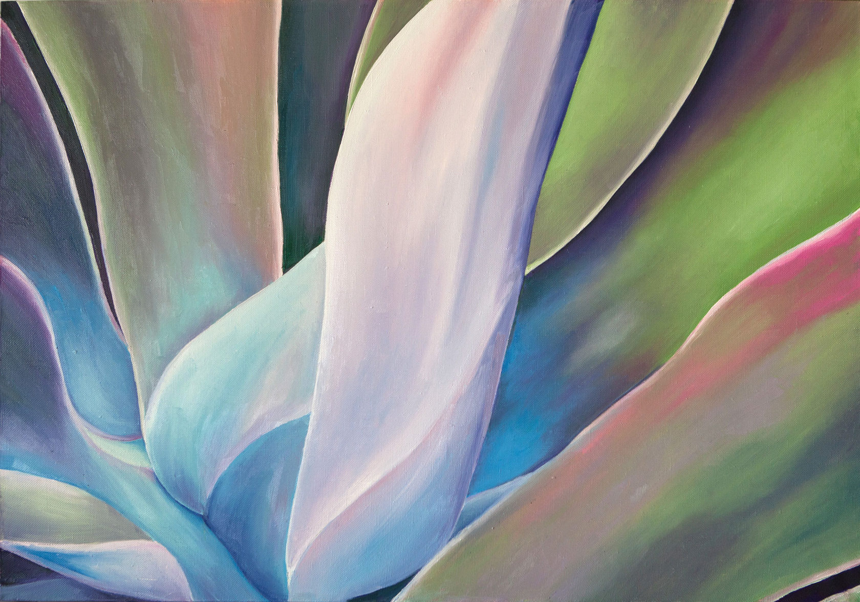 This picture is part of a series of works, which reflects the beauty of the flora from an unusual side - through a close macro look. These are half abstract canvases on which the line between the image of real plants and expressive patterns with a fantastic composition has been erased. In these works, as in real life, a view from a new angle makes it possible to discover new aspects in familiar things, to see their inner beauty. This is a reminder that sincere beauty has no criteria, rules nor standards.