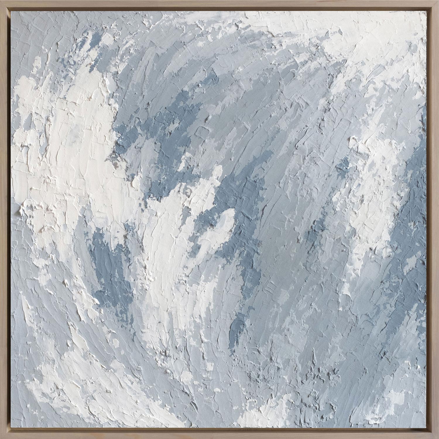Textured abstraction in complex gray-blue color. A minimalistic abstraction that is mesmerizing, eye-catching. Natural colors are obtained through the use of natural pigments. A modern textured painting that will highlight your sophisticated taste. The painting is sold in a handmade wooden frame.